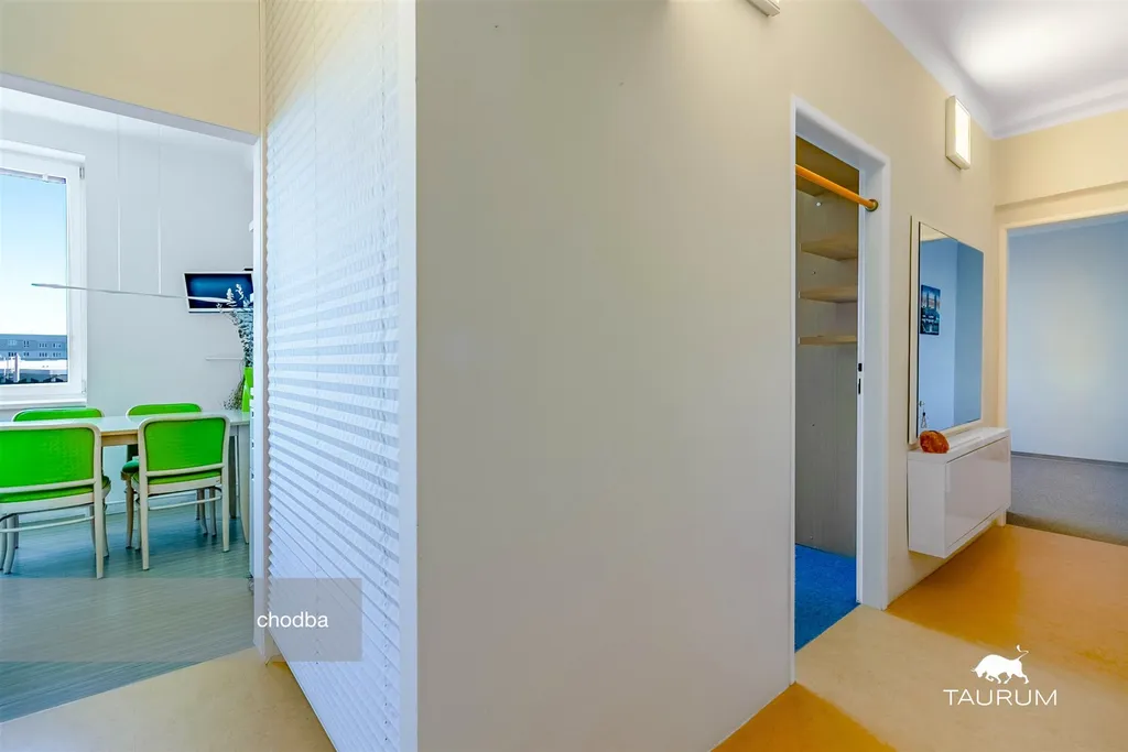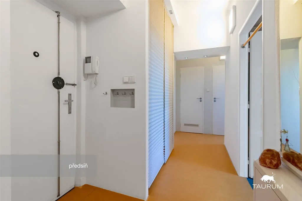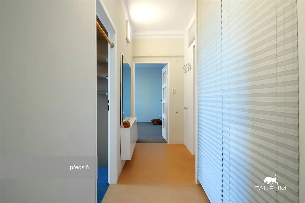Samotný byt je ve výborném stavu, za poslední roky byl průběžně renovovaný a je skvěle udržovaný. Dominantou tohoto bytu je hezká kuchyňská linka, veliké množství úložného prostoru, v policích, které jsou v SDK vestavbě v prostorné předsíni a vše je schováno za minimalistickým plisé, dále je zde LED podsvícení, úložný prostor i v jádře za WC, z venku větraná komora s modřínovými regály na uskladnění potravin, nepotřebných nebo úklidových věcí. Okna i balkonové dveře v bytě jsou velká a plastová a vybavena vnitřními žaluziemi, balkonové dveře jsou vybaveny navíc venkovními žaluziemi typu "Z", motor Somfy. Na balkoně je umístěn stabilní sušák na prádlo.