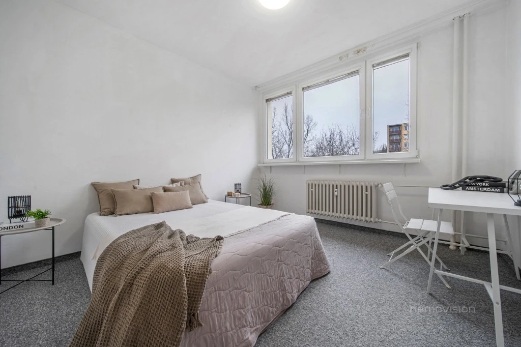 Byt se nachází v 6.NP a v roce 2015 prošel kompletní rekonstrukcí, díky které nabízí moderní a pohodlné bydlení. V rámci rekonstrukce bylo vybudováno nové bytové jádro se sprchovým koutem, instalována moderní rohová kuchyňská linka, nové posuvné dveře včetně zárubní, bezpečnostní vstupní dveře a prakticky řešený prostor.