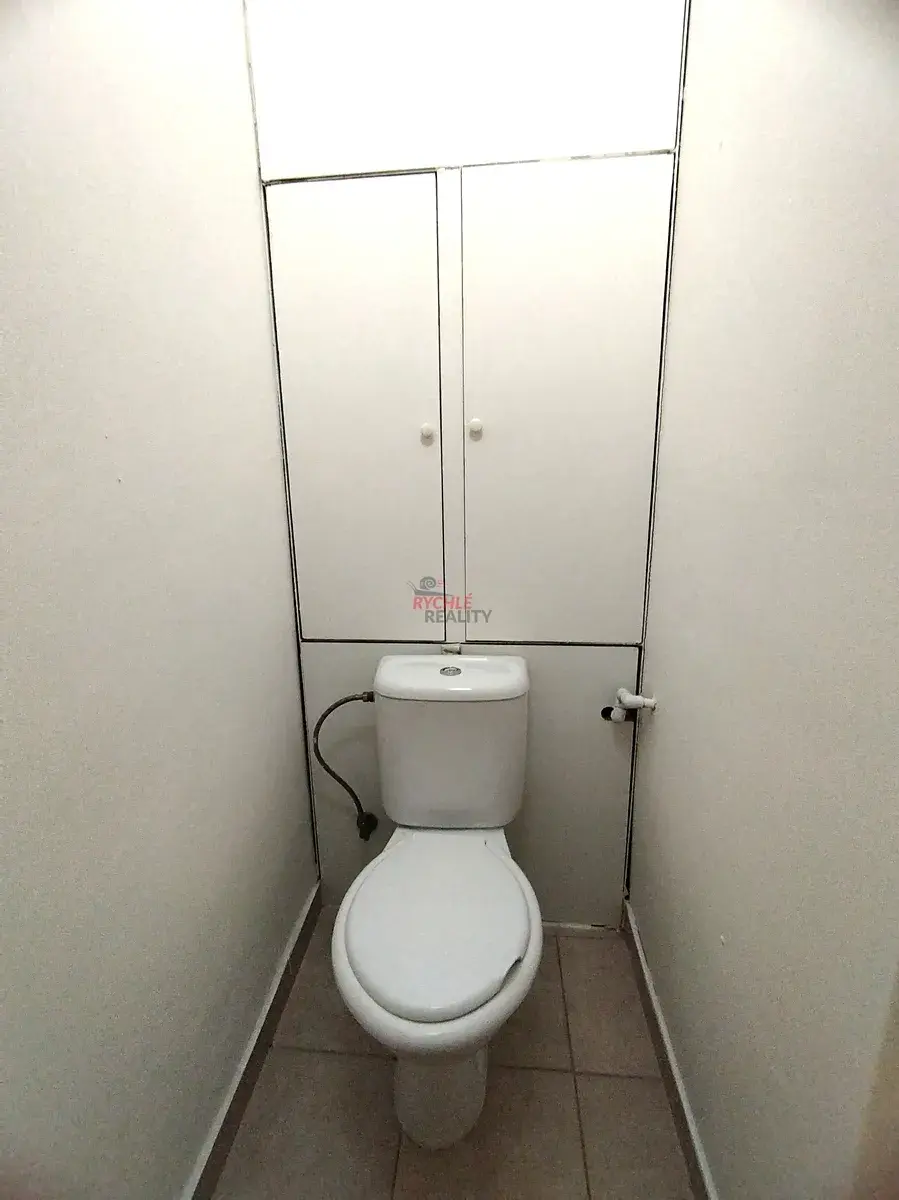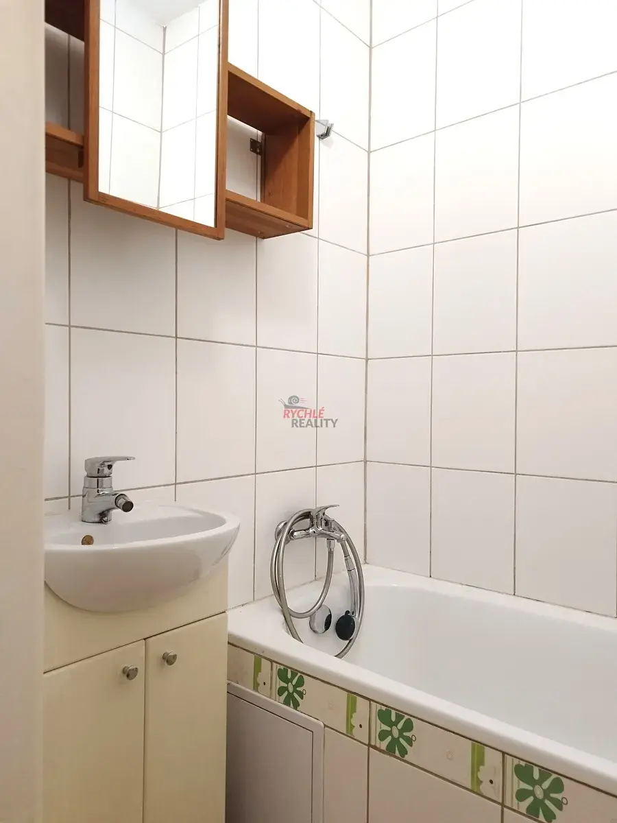 V kuchyni a předsíni je dlažba, v pokoji pak nový koberec. Koupelna a wc jsou zvlášť, v předsíni je vestavěná skříň a k bytu náleží sklepní kóje.
