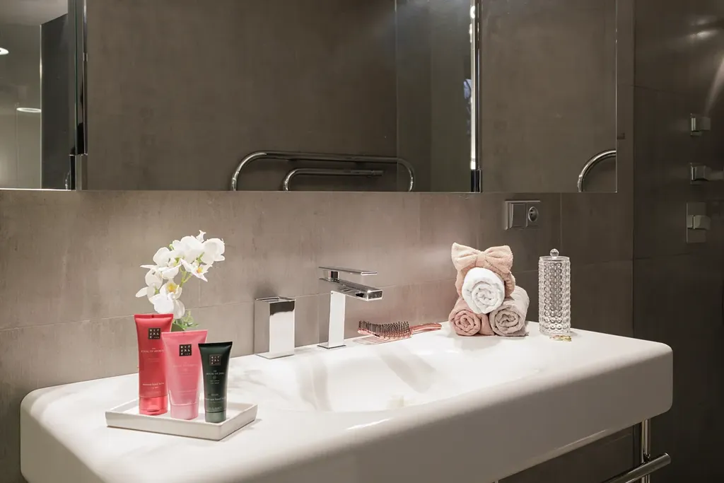 Wellness zóna nabízí luxusní bazén, který je vybaven protiproudem pro aktivní plavání, vířivkou USSPA Swim Spa pro dokonalý odpočinek a relaxaci. Voda v bazénu je sladká, což přispívá k příjemnějšímu koupání bez chemických látek obsažených v chloru.