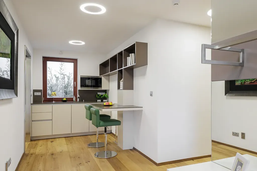Tento rodinný dům se 7 pokoji a kuchyňským koutem nabízí komfortní a prostorné bydlení v klidné vesnici obklopené lesy, což zajišťuje soukromí a příjemné prostředí. S jihozápadní orientací a efektivním využitím svažitého terénu je interiér příjemně prosvětlený a zahrada o rozloze 1585 m² s vrostlou zelenou vegetací, poskytuje dostatek prostoru pro různé aktivity a relaxaci. Dům byl přestavěn z původní budovy a v roce 2012 byla přistavěna nová část s vegetační střechou.