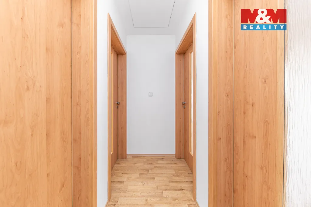 Dům má tři podlaží. V prvním podlaží se nachází prostorný obývací pokoj s plně vybavenou kuchyňskou linkou, koupelna, WC a šatna. Ve druhém podlaží jsou tři světlé, velké pokoje a prostorná koupelna. Snížené podlaží nabízí další velkou místnost s kuchyňskou linkou, koupelnu, technické zázemí s plynovým kotlem zajišťujícím vytápění celého domu. Odtud je přímý vstup na zahradu.