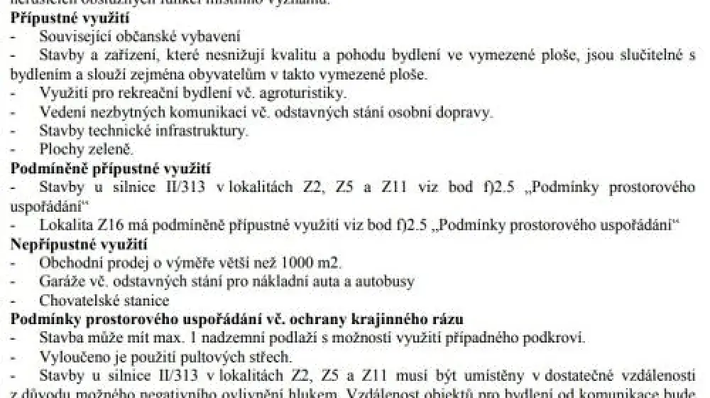 - Stavby u silnice II/313 v lokalitách Z2, Z5 a Z11 viz bod f)2.5 „Podmínky prostorového