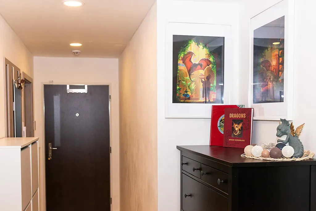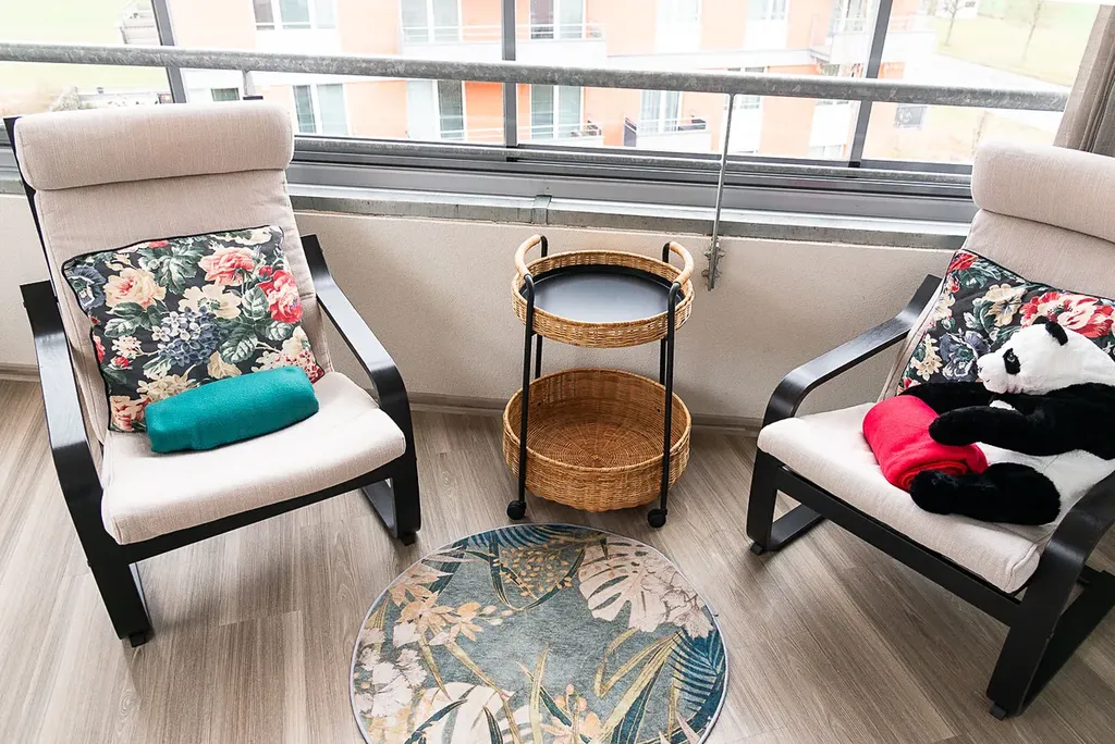 Byt o užitné ploše 65,5m² nabízí prostorný obývací pokoj (26,7 m²) s kuchyňským koutem vybaveným vestavěnými spotřebiči (trouba, varná deska, digestoř, myčka, lednice).