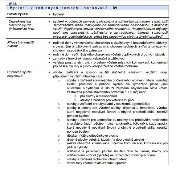 V lokalitě již proběhla demolice původních zemědělských objektů a projekt je nyní ve fázi parcelace a kompletního zasíťování. Ke každému pozemku budou přivedeny veškeré inženýrské sítě: elektřina, vodovod, splašková tlaková kanalizace i plynovod. Pohodlný příjezd je zajištěn po existující obecní asfaltové komunikaci. Územní plán počítá s výstavbou rodinných domů venkovského charakteru. Regulativy umožňují si postavit dům o dvou nadzemních podlažích s využitelným podkrovím. Střecha může být sedlová, s valbou nebo polovalbou. Koeficient zastavění max. 0,7.