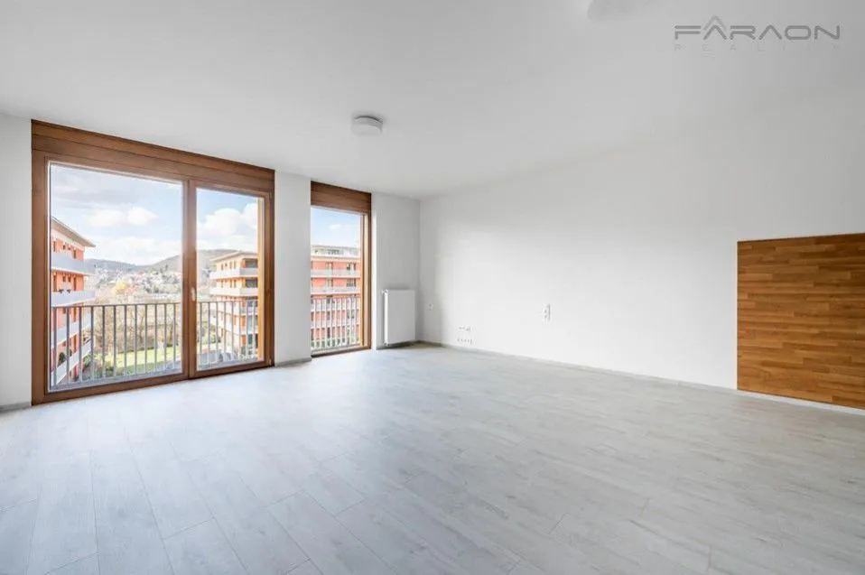 K pronájmu krásný, zcela nový byt 1+kk (38 m2) s balkonem (5 m2) a sklepní kójí na patře s bytem (3 m2), situovaný ve 4. patře rezidenčního projektu Belárie Park II.