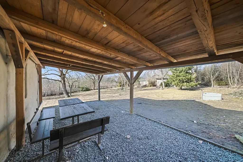 Tato útulná chata se nachází na krásném slunném pozemku o velikosti 1 239 m², orientovaném na jihozápad, což zajišťuje dostatek slunce po celý den a jedinečné západy slunce s výhledem do okolní přírody.