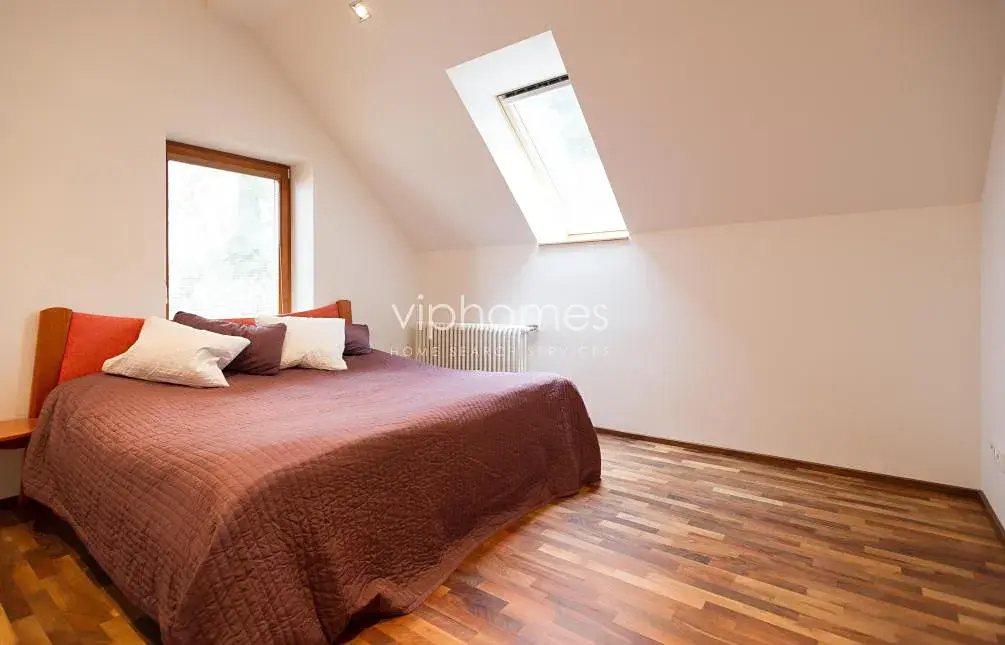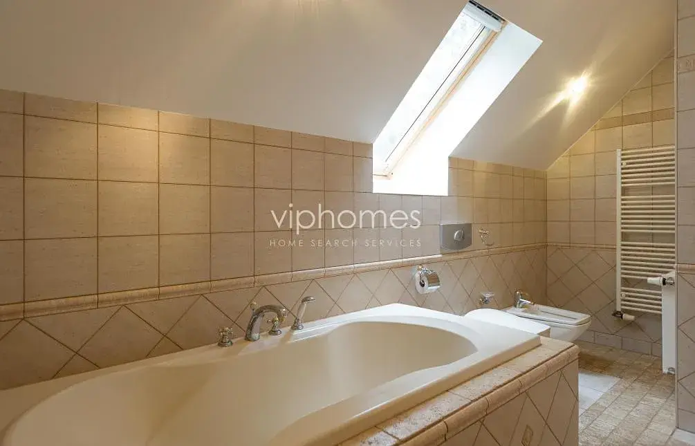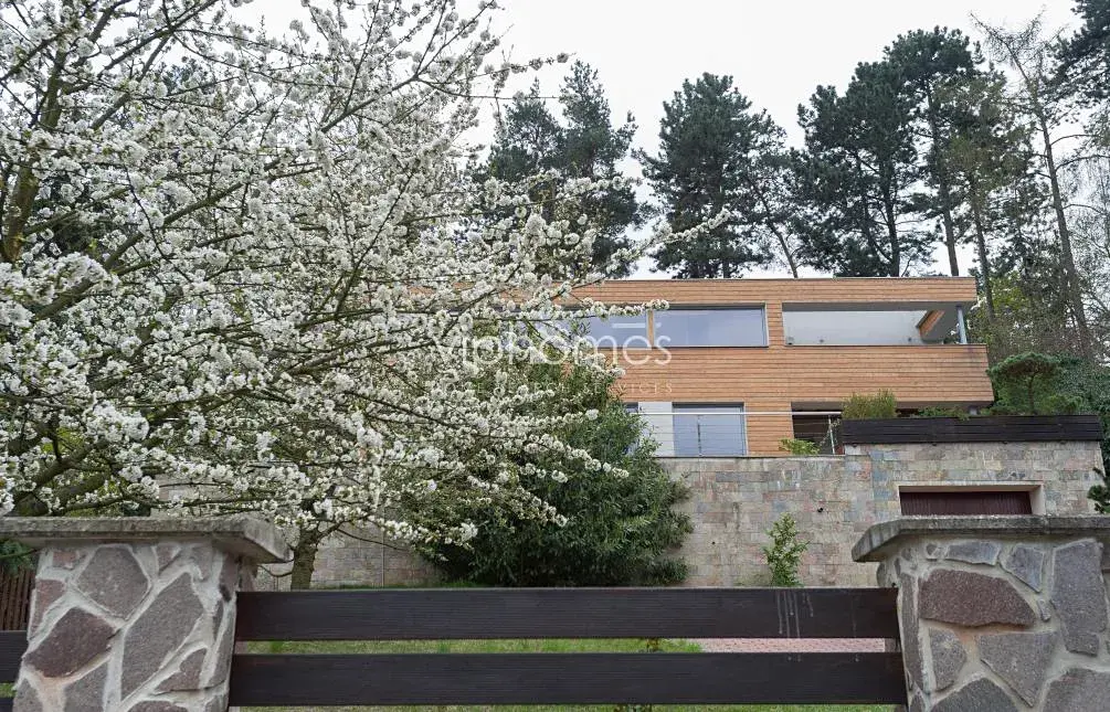 Vestavěné skříně, alarm, satelit, internet, myčka, terasa a zahrada skýtající naprosté soukromí. Garáž pro dva vozy plus parkovací stání na pozemku. Poplatky cca 10.000 Kč měsíčně.