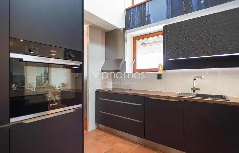 Dům nabízí celkem čtyři ložnice a dvě koupelny. V přízemí se nachází společenská část domu-obytný prostor s krbem, jídelnou a nová plně vybavená kuchyně, (spotřebiče Miele/myčka, digestoř, el. keram.deska, el. trouba, mikrovlnná trouba), a sociální zázemí. Z obývacího pokoje je vstup k bazénu a relaxačnímu zázemí ze saunou, sprchou, toaletou a pokojem, který je možno využít jako pracovnu nebo pokoj pro hosty. V patře je velká galerie, tři ložnice; hlavní ložnice má vlastní koupelnu /vana, WC, sprcha/, další dvě ložnice s koupelnou (sprcha/toaleta). Ze všech místností úžasné panoramatické výhledy.