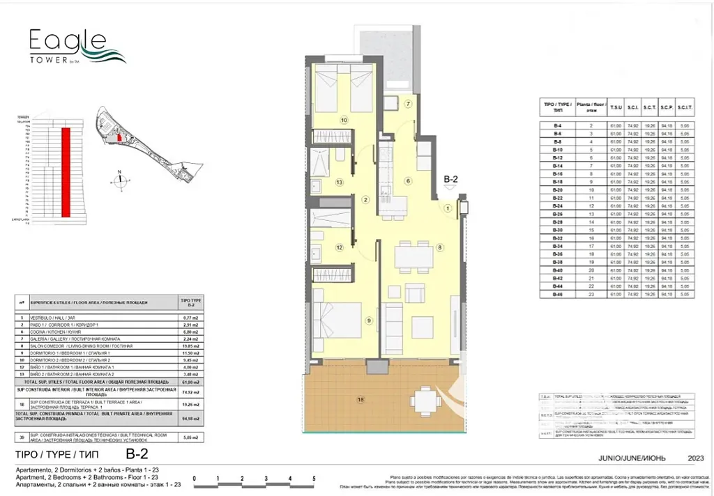Celková plocha bytu 94,18 m² je rozvržena s důrazem na praktičnost a pohodlí. Dominantou je obývací prostor propojený s kuchyní a jídelnou, odkud se plynule vstupuje na prostornou terasu o velikosti 19,26 m². Právě terasa se stává místem pro ranní kávu, klidné večery i chvíle, které si člověk pamatuje. Hlavní ložnice nabízí soukromí a klid, druhý pokoj se snadno přizpůsobí potřebám, ať už jako pracovna, dětský pokoj nebo prostor pro hosty. K dispozici jsou dvě koupelny, sklep a garážové stání v podzemí s přípravou pro elektromobil.