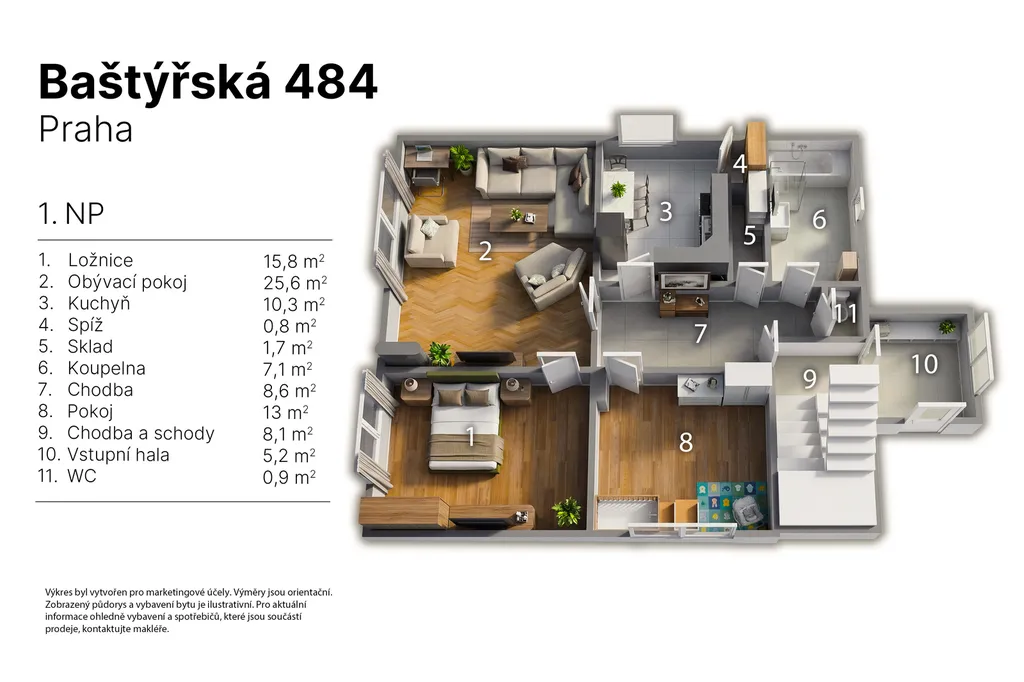 Velkou přidanou hodnotou je také možnost dalšího rozšíření – dle dostupných informací z územního plánu lze uvažovat o vybudování podkroví, čímž se obytná plocha domu ještě výrazně navýší. Suterén o velikosti více než 77 m² poskytuje nadstandardní zázemí včetně dvougaráže, prádelny, technických místností a sklepů a jsou tam i okna. K domu máme připravenou i virtuální prohlídku, díky které si nemovitost projdete z pohodlí domova – rád Vám ji zašlu. Výměry domu v inzerátu jsou orientační.