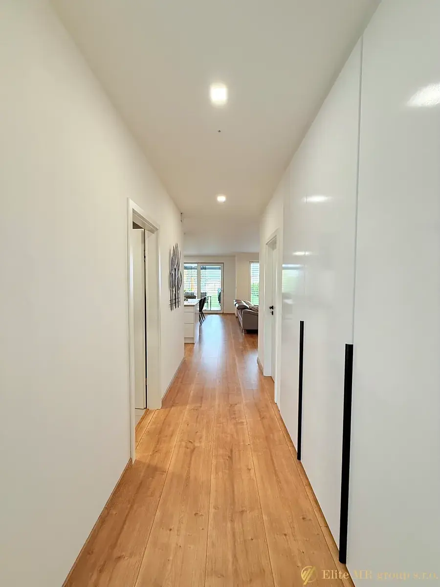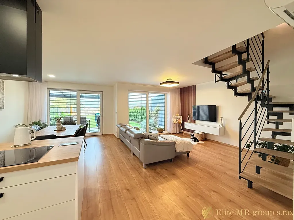Dům byl připravován pro vlastní bydlení současných majitelů, čemuž odpovídá kvalita provedení i důraz na funkčnost. Dispozice 5+kk poskytuje prostorný obývací pokoj s kuchyňským koutem a čtyři samostatné pokoje, vhodné pro rodinu i kombinaci bydlení a home office. Interiér působí světle a vzdušně, s důrazem na praktičnost a dostatek úložných prostor.