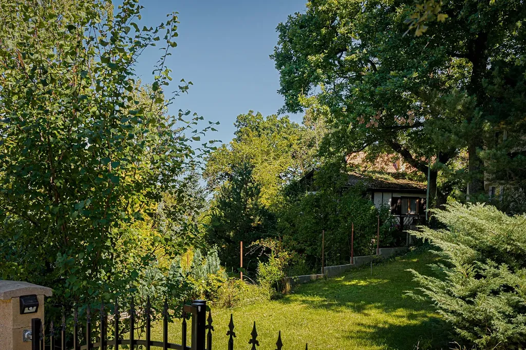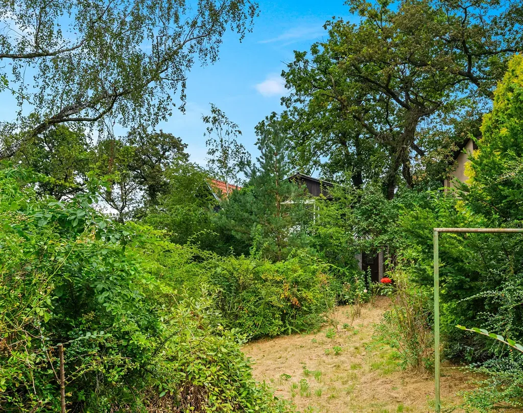 Pozemek je způsobem využití kategorizován jako pěstební s označením PZO-zahrádky a zahrádkové osady, nikoli stavební parcela. Pozemek je oplocený. Na zahradě jsou vzrostlé jehličnany a další stromy a keře. Romantické místo v blízkosti lesa, zeleně a jízdárny.