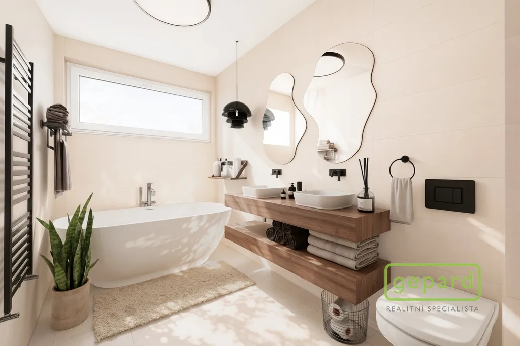 • 2.NP: 4 prostorné pokoje (z toho jeden se šatnou, jeden s vlastní koupelnou) + další rodinná koupelna
