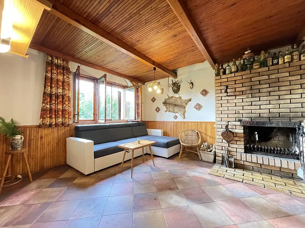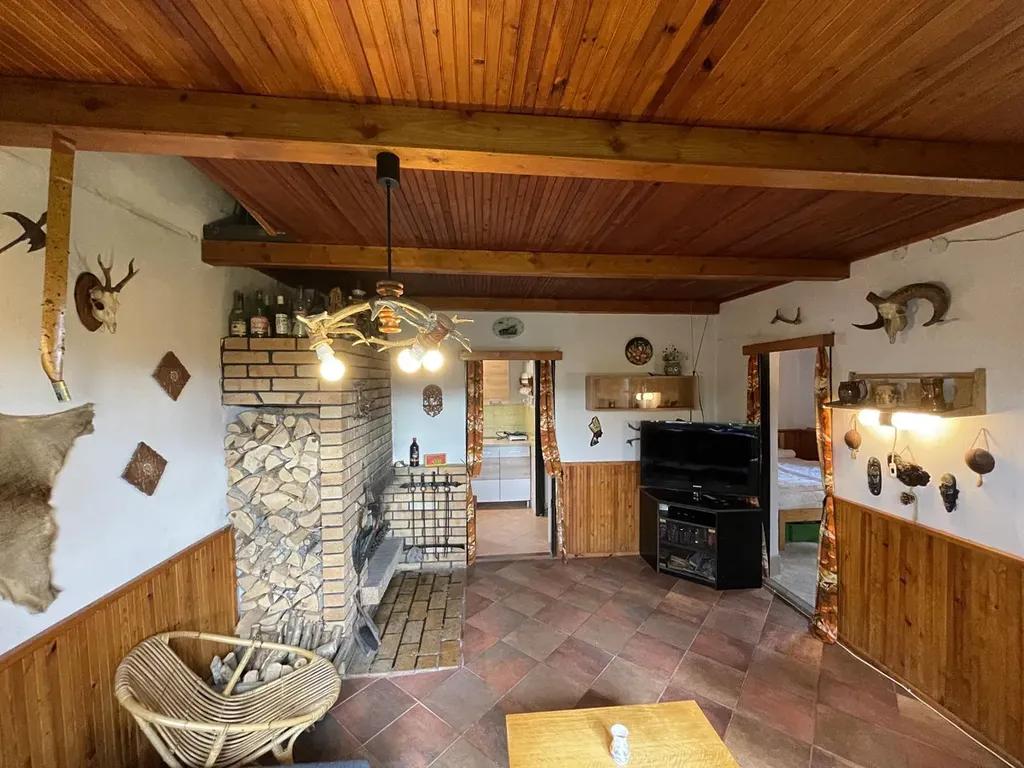 Vytápění je zajištěno krbem, což nejen že dodává teplo, ale i příjemnou atmosféru do všech místností.