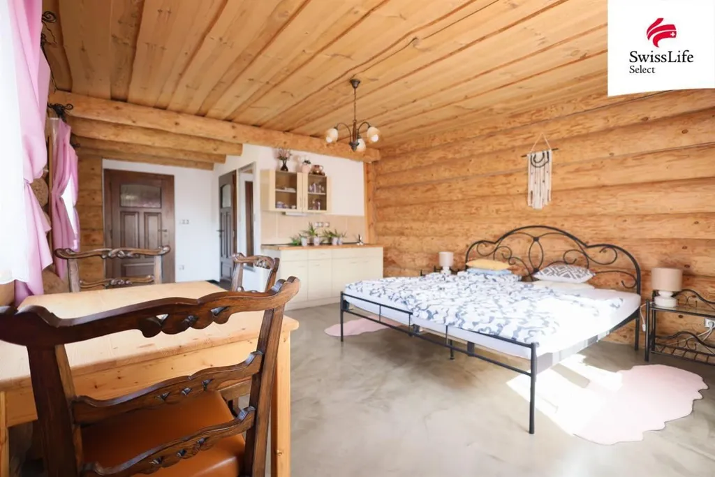 Nabízím k prodeji nadstandardně provedený velký masivní srub o dispozici 5+kk s celkovou užitnou plochou přibližně 205 m a co je důležité - SOUČÁSTÍ PRODEJE je také samostatná zděná stavba se zastavěnou plochou 230 m, kterou lze využívat souběžně jako luxusní společenské zázemí s vlastními WC, garáž, dílna, sklad, a nebo například pro milovníky koní využít část stavby jako prostory k ustájení nejednoho krasavce.