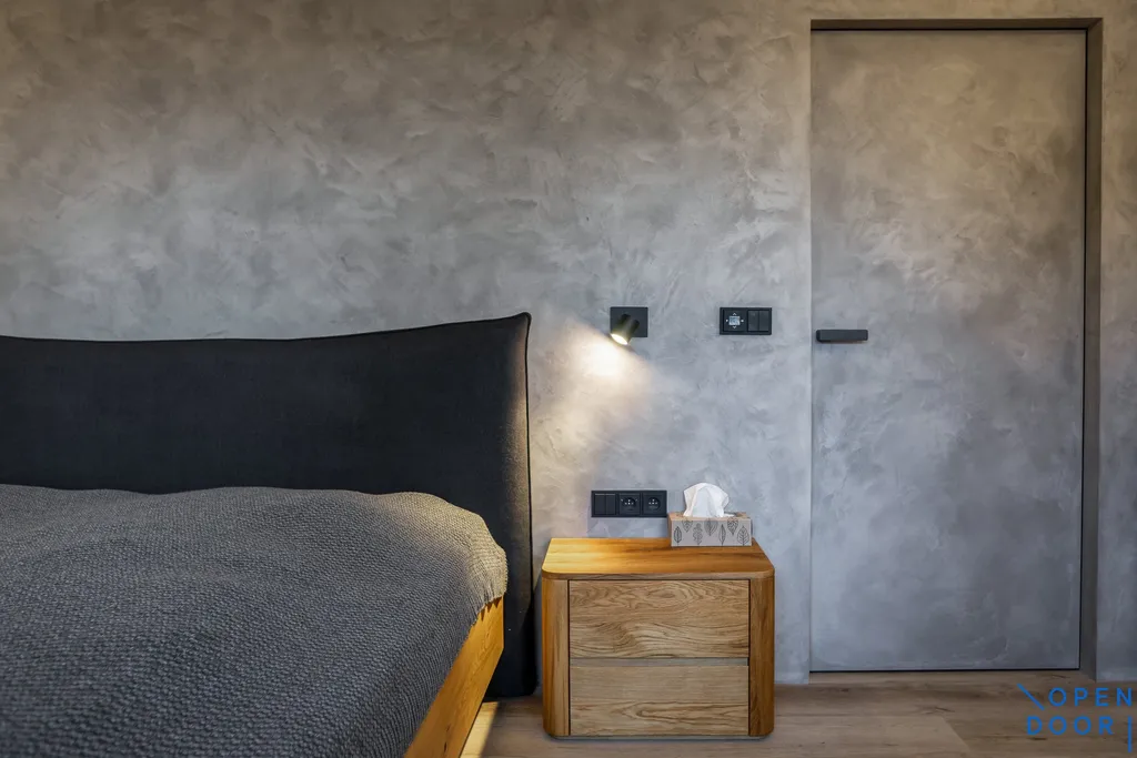 Dominantou bytu je velkorysý obytný prostor (38,6 m²) s velkou sedací soupravou zhotovenou na míru, propojující obývací část, jídelnu a kuchyni s ostrůvkem. Kuchyňská linka, také vyrobená na míru, s vestavěnými high-end spotřebiči (varná deska, lednice s mrazákem, myčka nádobí, trouba, vinotéka) tvoří elegantní centrum celého bytu. Ložnice (15,5 m²) poskytuje klid a soukromí má vestavěné skříně a je důmyslně propojená se samostatnou šatnou (7,5 m²) s dalšími vestavěnými systémy. Pracovna / druhý pokoj nabízí přímý vstup na terasu o velikosti cca 14 m². Tento prostor je ideální pro home office s možností relaxace na čerstvém vzduchu, dětský pokoj nebo jako klidná soukromá zóna. Ve všech pokojích je sound system (multiroom) a v celém bytě smart osvětlení (systém Philips Hue). Koupelna je provedena v luxusním tmavém dekoru s velkoformátovými obklady, walk-in sprchovým koutem a designovým podsvíceným zrcadlem. Toaleta samostatně. K bytu náleží jedno parkovací místo ve dvougaráži v přízemí domu a dále zděný sklep.