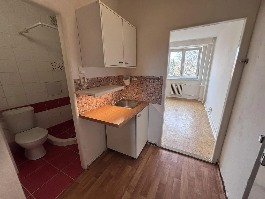 Bezbariérový zrekonstruovaný Nájemní byt 1+kk 20m² v Ostravě Hrabůvce na ul.Krakovské. Možnost dlouhodobého bydlení. Nová menší kuchyňská linka materiál lamino. V dolní části prostor pro lednici, nebo pračku. V chodbě zděná koupelna s červeno bílými obklady, sprchou a WC dohromady. Samostatný pokoj oddělen od chodby. Na podlahách dlažba a PVC. Plastová okna přes celý pokoj. Byt se nachází v 4NP. Dům po kompletní revitalizaci (okna, zateplení, fasáda, vstup do domu, schránky ). Trvalé bydliště samozřejmostí. V domě nový Euro výtah. Velmi klidná lokalita ve slepé ulici. V okolí vzrostlé stromy. V těsné blízkosti školka, samoobsluha 5 minut chůze. MHD 10 minut chůze. Nájem 3.000,- + služby ( studená voda, teplá voda, topení , výtah, spol.osvětlení - cca 1.300,-Kč na 1 osobu ). Plus elektřina samostatně na nájemce. Vratná kauce 0,-. Jednorázový nevratný poplatek. Info v realitní kanceláři. Volný ihned.