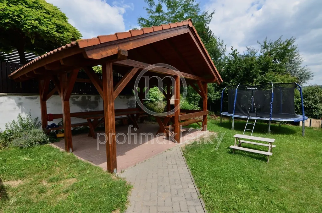 - za domem kryté venkovní posezení, ideální pro relaxaci, posezení s přáteli i grilování