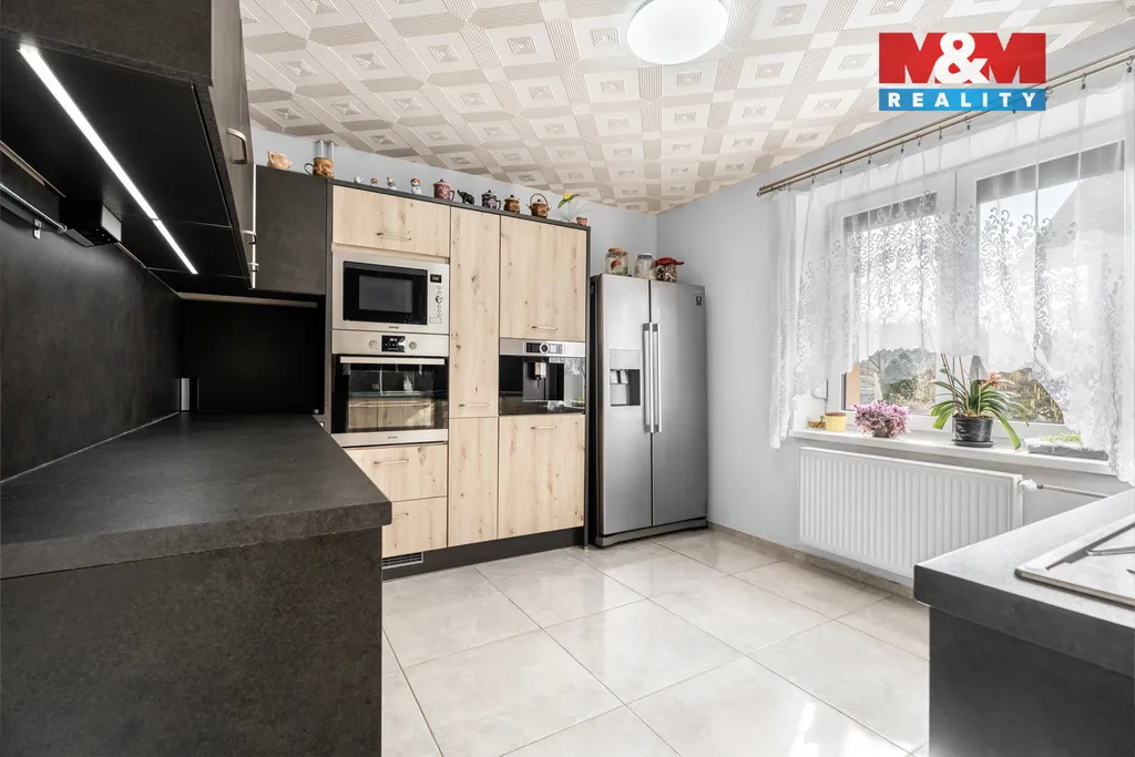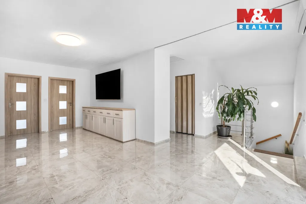 Tak posuďte sami ... "TO MÁTE " ... v suterénu velkou garáž, dílnu, sklady, místnost na zabijačku, sociálku, ... bezbariérově se dostanete do přízemí, kde je jídelna, hala, kuchyň, ložnice, obývák se vstupem na terasu, šatna, koupelna, ... schodištěm vystoupáte do 2.NP, kde je hala spojená s obývákem a vstupem na druhý balkón, šatna, ložnice, dětský pokoj, další vymazlená kuchyně a třetí balkón. Samozřejmě je všechno nově zrekonstruováno, zatepleno, jsou tu 3 skla, tepelné čerpadlo, klimatizace, venkovní žaluzie,... Vedle domu pak zbrusu nová "pártypergola" s grilem, udírnou a barem, bazén se slanou vodou, druhá garáž s dílnou