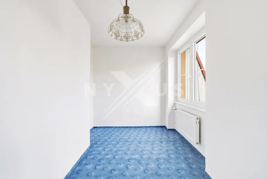 2.patro - tři pokoje ( jeden se vstupem na balkón a výhledem do zahrady, druhý také se vstupem na balkón s výhledem do ulice) + jeden malý, vhodný například jako pracovna, koupelna s rohovou vanou a samostatné WC, chodba.