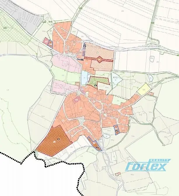 V územním plánu obce je pozemek veden jako plocha bydlení venkovského typu (BV), zastavitelnost pozemku je cca 10.500m2. Veškeré inženýrské sítě ( vodovodní, kanalizační přípojka, elektrické vedení a plyn) vzdálené cca 150m k nejbližším domům v obci. Vjezd na pozemek je z obecní komunikace.