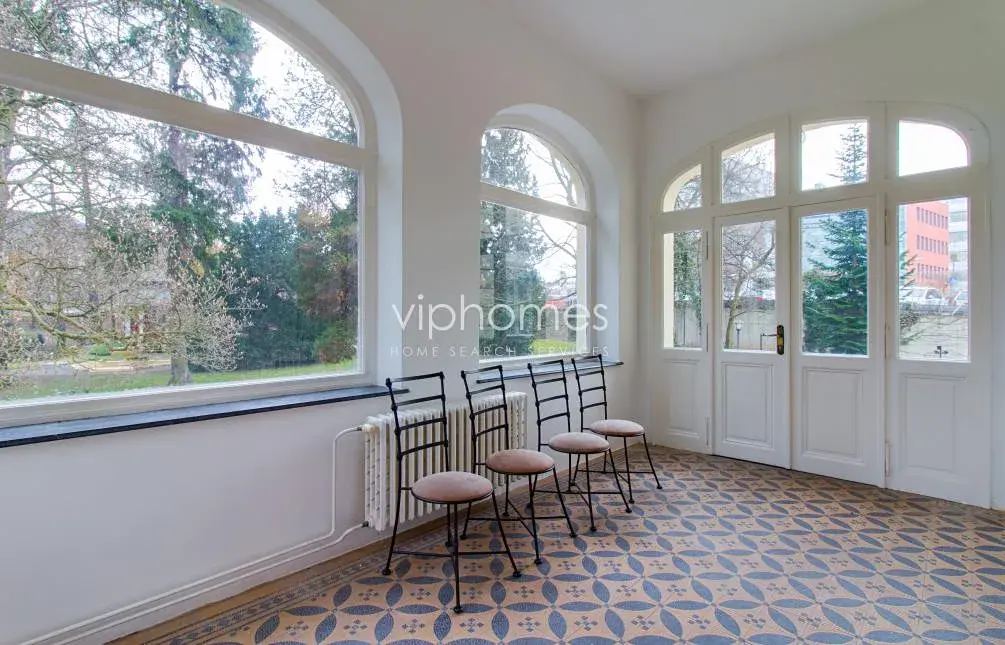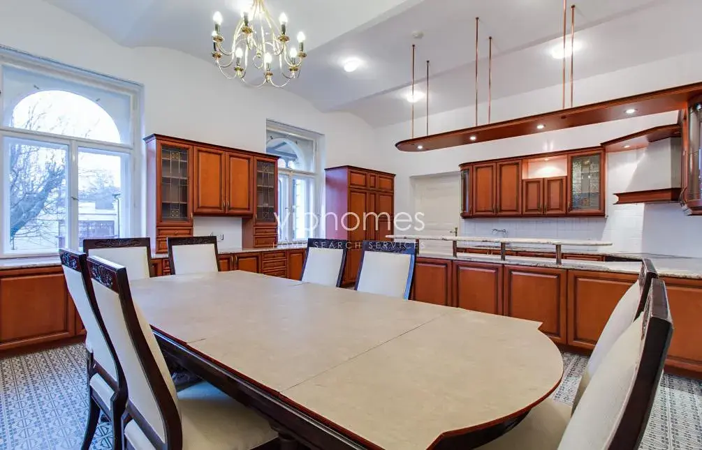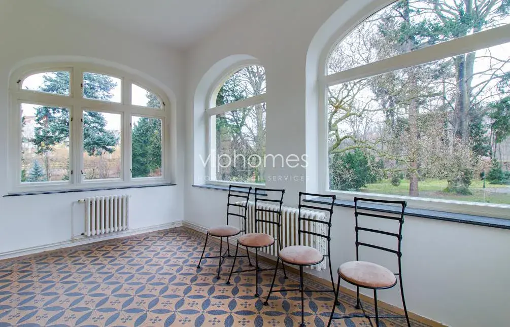 Zachované původní prvky, štuky, vysoké stropy, troje kachlová kamna, parkety, dlažba, dřevěné okenice. Vila je vybavena videotelefonem, alarmem a má satelitní příjem. Poplatky za služby, vodu a vytápění cca 20 000 Kč měsíčně. Elektřina se hradí zvlášť (převod na nájemce). Možnost pronajmout bez nábytku.