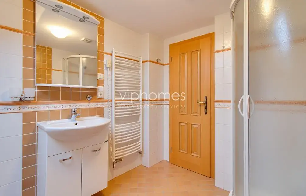 Prostorná vila sestává ze 7 ložnic a 5 koupelen. Společenské přízemí vily nabízí centrální halu, obývací pokoj se zimní zahradou, plně vybavenou kuchyň s jídelnou a terasou, pracovnu, šatnu, koupelnu a technické zázemí. V prvním patře je hlavní ložnice s plně vybavenou koupelnou a velkou šatnou, další 2 ložnice s koupelnou, kuchyň, terasa a menší zimní zahrada. Ve druhém patře jsou tři podkrovní ložnice, dvě koupelny, kuchyňka. Relaxační zázemí tvoří bazén, sauna, koupelna, tělocvična, herna, vinotéka umístěny v suterénu vily. Prádelna, technické zázemí, skladové místnosti, úložné prostory, plynové kotle, v suterénu, stejně jako vstup do zahrady.