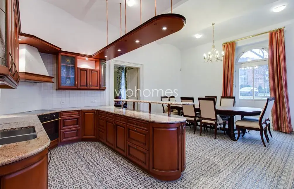 Jedinečná nemovitost z roku 1902 umístěná v areálu Vokovického dvora, jehož historie sahá do 15 století. Vila s vnitřním bazénem, saunou, krásnou vzrostlou zahradou, tenisovým kurtem a terasami je situována v klidné ulici v blízkosti přírodní rezervací Šárka, v jedné z nejkrásnějších částí hlavního města, a to na okraji Dejvic (Vokovice) na Praze 6. O výbornou dopravní dostupnost se starají pravidelné tramvajové a autobusové linky vedoucí na metro "A" Dejvická. Tato oblast navíc disponuje kromě výborné dopravní dostupnosti, také bohatou občanskou vybaveností. Ke sportování v přírodě vám poslouží cyklistické stezky nebo přilehlá sportovní hřiště.