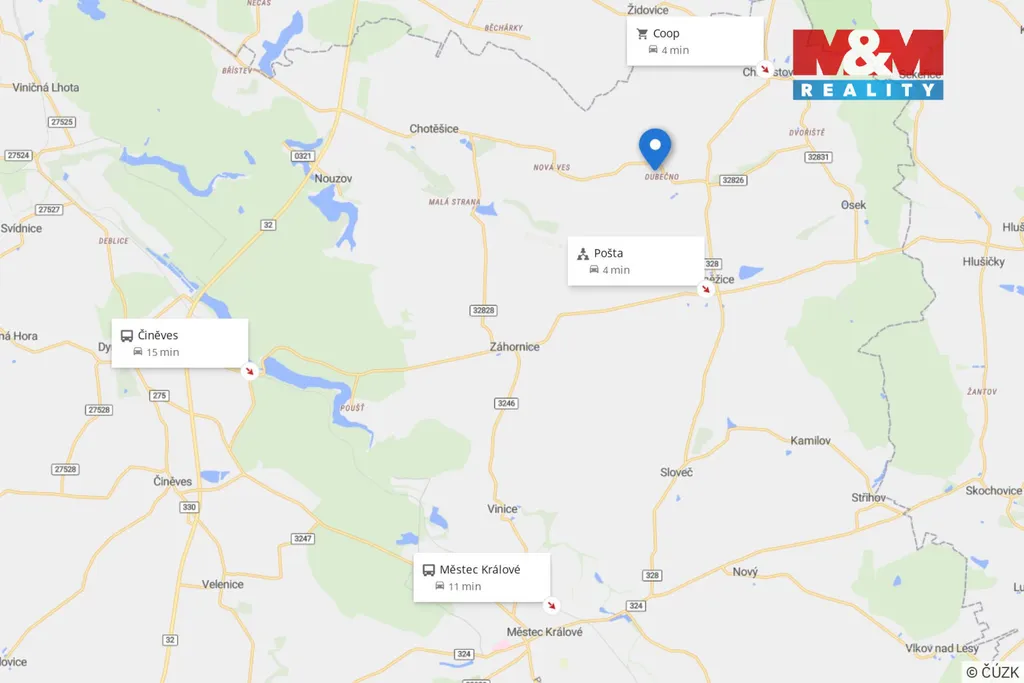 Dopravní dostupnost autobusem Praha 69 km, Městec Králové 9 km, Poděbrady 20 min., Nymburk 10 min.