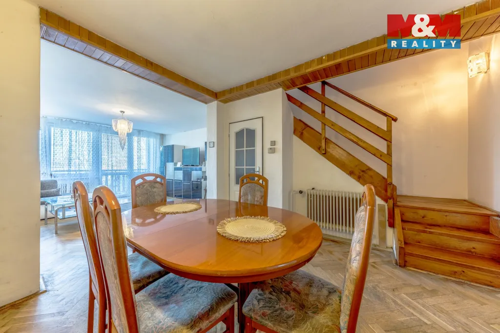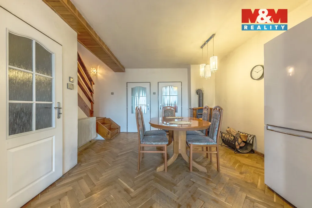 Exkluzivně prodáváme prakticky řešený řadový dům v Sadské u Nymburka. Dispozice domu je 5+1. Bonusem jsou 3 balkóny, každý o velikosti 6 m² a terasa u vchodu 16 m². V 1.NP se nachází vstupní chodba, toaleta, koupelna se sprchovým koutem, komora, kuchyně, jídelna s obývacím pokojem a balkón s výhledem do zahrady. Z chodby vystoupáme otevřeným dřevěným schodištěm do 2.NP, kde jsou dva zrcadlově stejné pokoje propojené společným balkónem, koupelna s vanou, toaleta a naproti je ložnice s balkónem. Celý dům je podsklepený. V suterénu je garáž, kotelna, komora, prádelna s vanou, pračka, sušička a východ přímo do zahrady. Topení je řešeno krbovými kamny, které snadno vytopí celý dům. Další varianta je elektrický kotel s rozvodem do radiátorů. Plyn se nachází na hranici pozemku. V místě je veškerá občanská vybavenost. Finanční a právní servis máme pro vás připravený.
