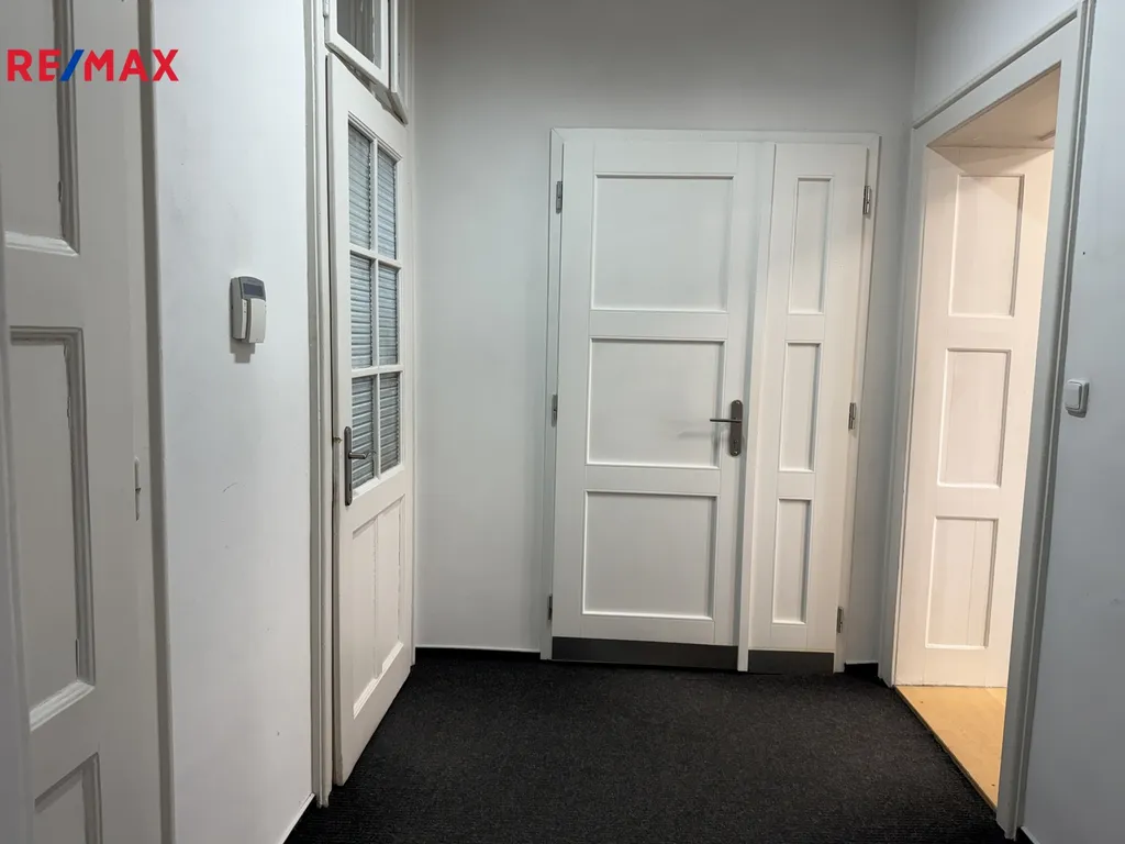Kancelář má dva samostatné vchody, přes vstupní dveře z hlavní chodby, což nabízí možnost rozdělení prostor na dvě ideální poloviny.