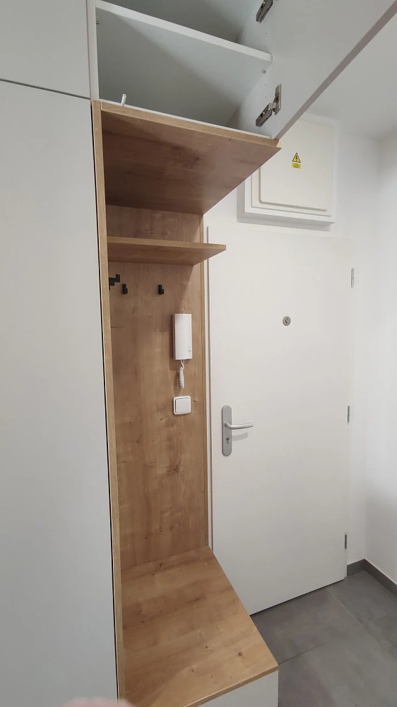 Vstupní protipožární dveře a ocelová zárubeň s jednobodovým bezpečnostním kováním. Okna pokoje + KK a ložnice jsou situována na západní stranu.