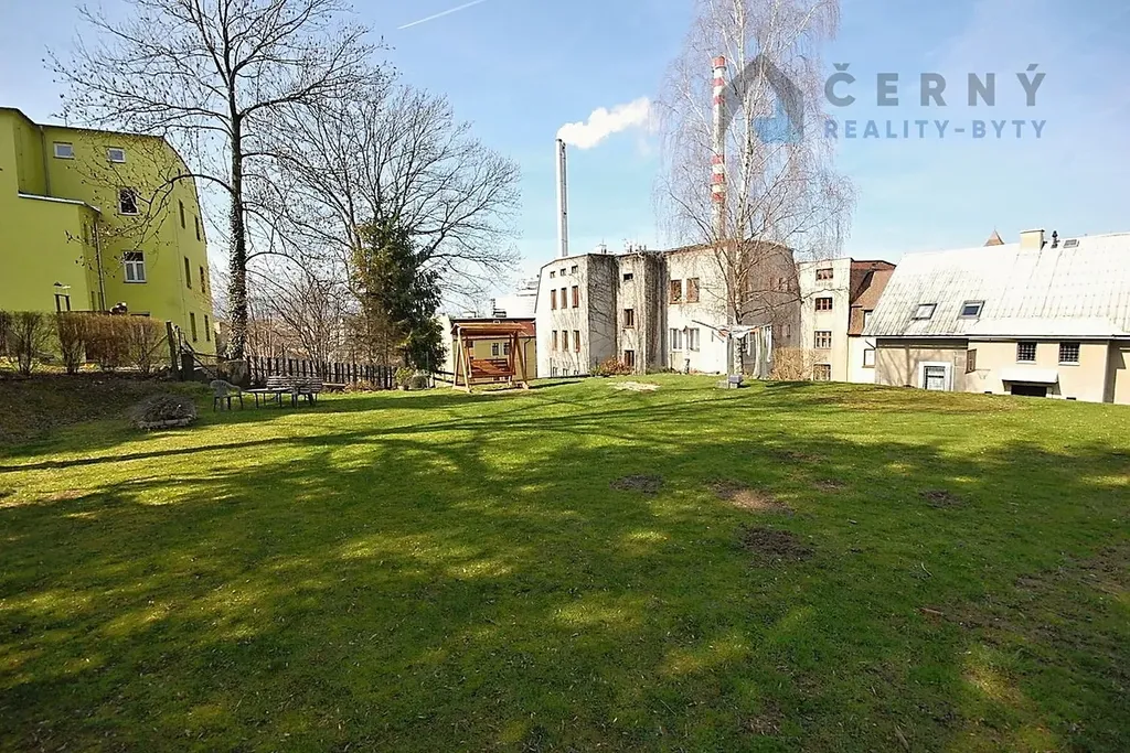 V klidové části za domem je oplocená, udržovaná zahrada s posezením, kterou lze užívat a dlážděná parkovací plocha. Parkovací místo lze pronajmout za poplatek 1.000,- Kč/měs.