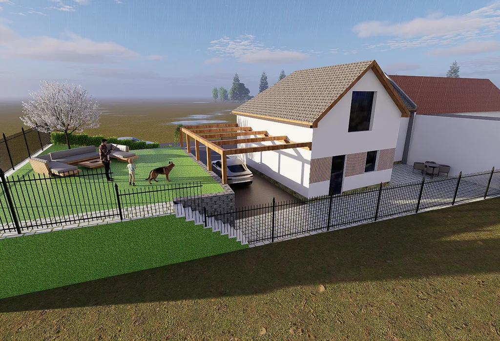 Součástí nabídky je také přiložená vizualizace, která odpovídá typu stavby, již je možné na pozemku realizovat.