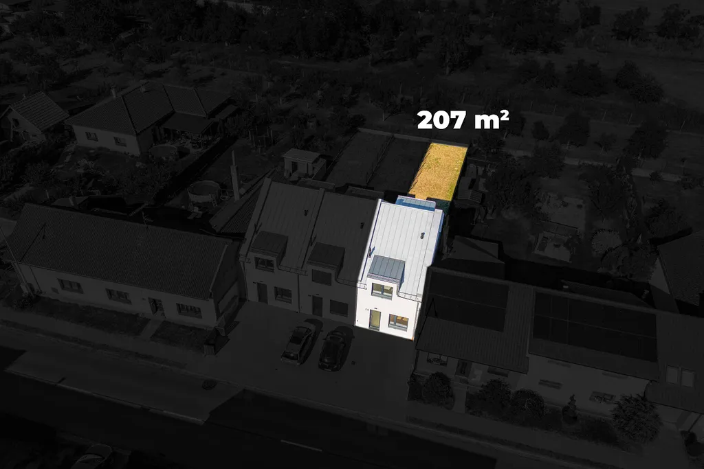 Řadový rodinný dům je dispozičně řešený jako 4+kk s možností změny na 5+kk, zahradou a dvěma parkovacími místy u domu.