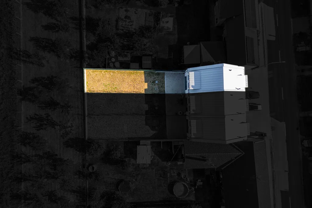 Dům je situovaný na jihozápad (vchod, místnost v přízemí a ložnice) a na severovýchod (dětské pokoje, obývací pokoj, kuchyň a zahrada).