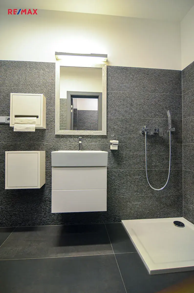 Kuchyňka, moderní sociální zařízení, úložný prostor a vlastní parkovací místo. Vše promyšlené tak, aby se vám tady dobře pracovalo – nebo i bydlelo.