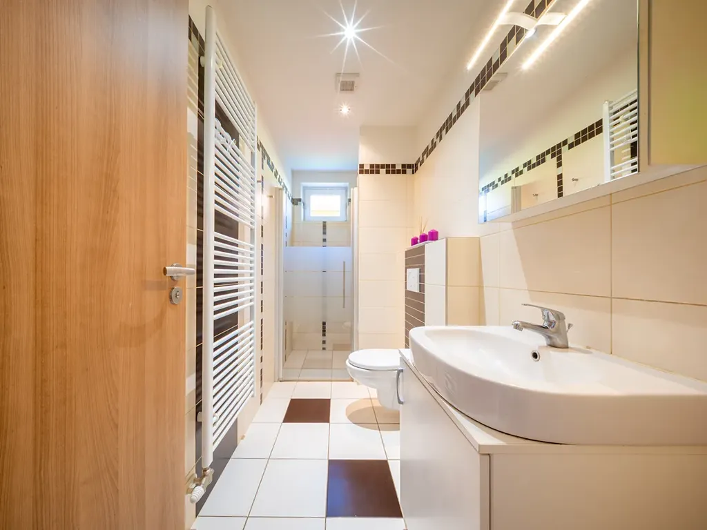 Při vstupu do domu vás přivítá prostorná chodba se šatnou, kde nemusíte dávat jeden druhému přednost. V domě jsou dále dvě velké koupelny, jejichž pohodlí si zamilujete hned první ráno. Patro nabízí tři samostatné pokoje, které naopak poskytují soukromí každému členu rodiny. Jistě oceníte také spoustu úložného prostoru, zateplenou půdu a garáž, ze které se do domu pohodlně dostanete vnitřním vstupem.