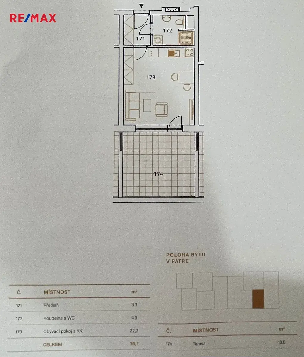 Byt se nachází v reprezentativním cihlovém domě ve výborném technickém stavu a nabízí užitnou plochu 30,2 m², chytře řešenou tak, aby poskytovala maximální pohodlí i funkčnost. Dominantou bytu je bezesporu prostorná terasa o velikosti 18,8 m², ideální pro ranní kávu, večerní relaxaci či setkání s přáteli v soukromí.