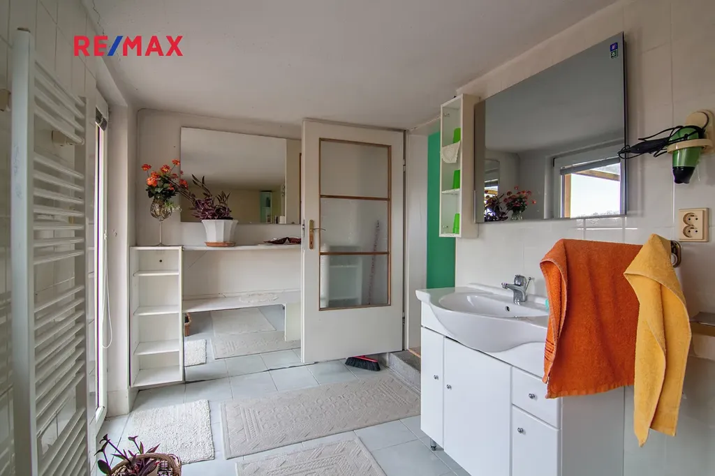 Dům nabízí celkem 5 místností, 2 koupelny (jedna s vanou, druhá se sprchovým koutem), 2 WC, prostornou vstupní halu, zimní zahradu orientovanou do dvora a velkou terasu s krásným výhledem. Je také částečně podsklepený (dostatek úložného prostoru).