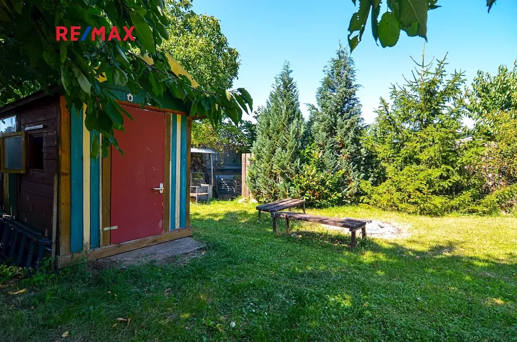 Na pozemku stojí menší zděná chatka se sedlovou střechou, která je v dobrém technickém stavu, s udírnou a posezením. Chatka je zapsána v katastru nemovitostí (stavba pro rodinnou rekreaci) a lze ji také případně rekonstruovat nebo nahradit novou stavbou dle aktuálních regulativ. Chatka není napojena na elektřinu, vedení se však nachází přímo u hranice pozemku. Dostatek vody i v sušších měsících zabezpečují čtyři sběrné nádrže dešťové vody, každá o velikosti 1000 litrů. Přístup k zahradě je zajištěn po obecní zpevněné komunikaci.