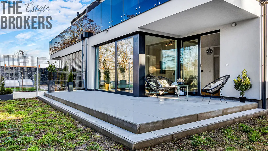 V prvním patře se nachází hlavní ložnice s vlastní koupelnou, šatnou a soukromou terasou. Dále jsou zde dva dětské pokoje, každý s vlastní terasou, a další koupelna. Dispozice je ideální pro rodinné bydlení s dostatkem soukromí pro každého člena domácnosti.