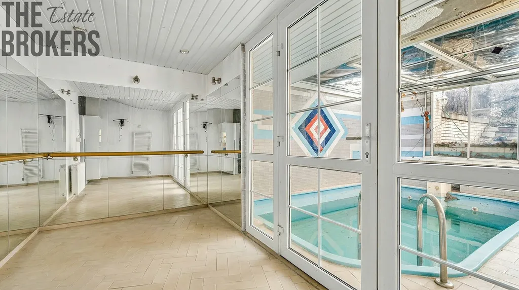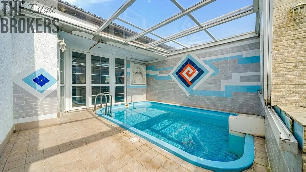 Součástí nemovitosti je také bazén, který spolu se zahradou nabízí příjemné zázemí pro relaxaci a soukromí v klidném rezidenčním prostředí.