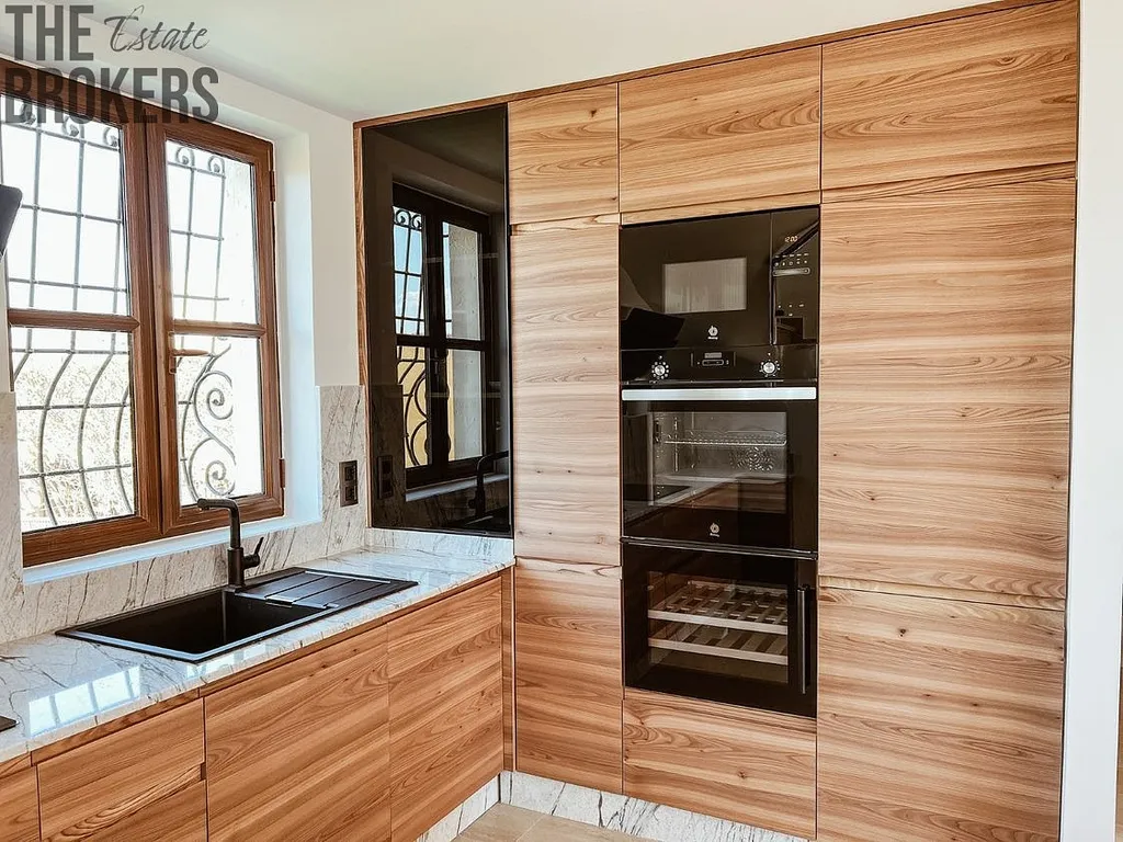 Kuchyně: Kuchyně jsou v otevřeném stylu s integrovanými spotřebiči, deskou 'Compac' a snídaňovým barem.