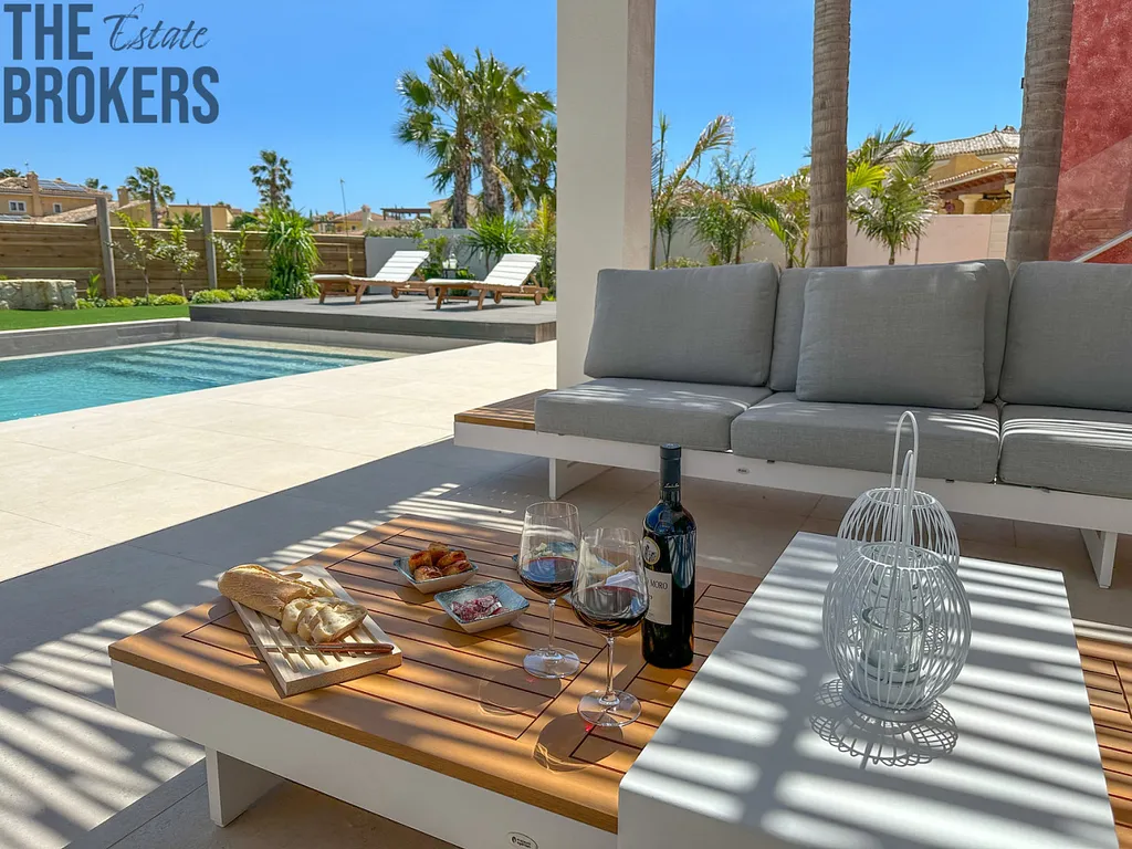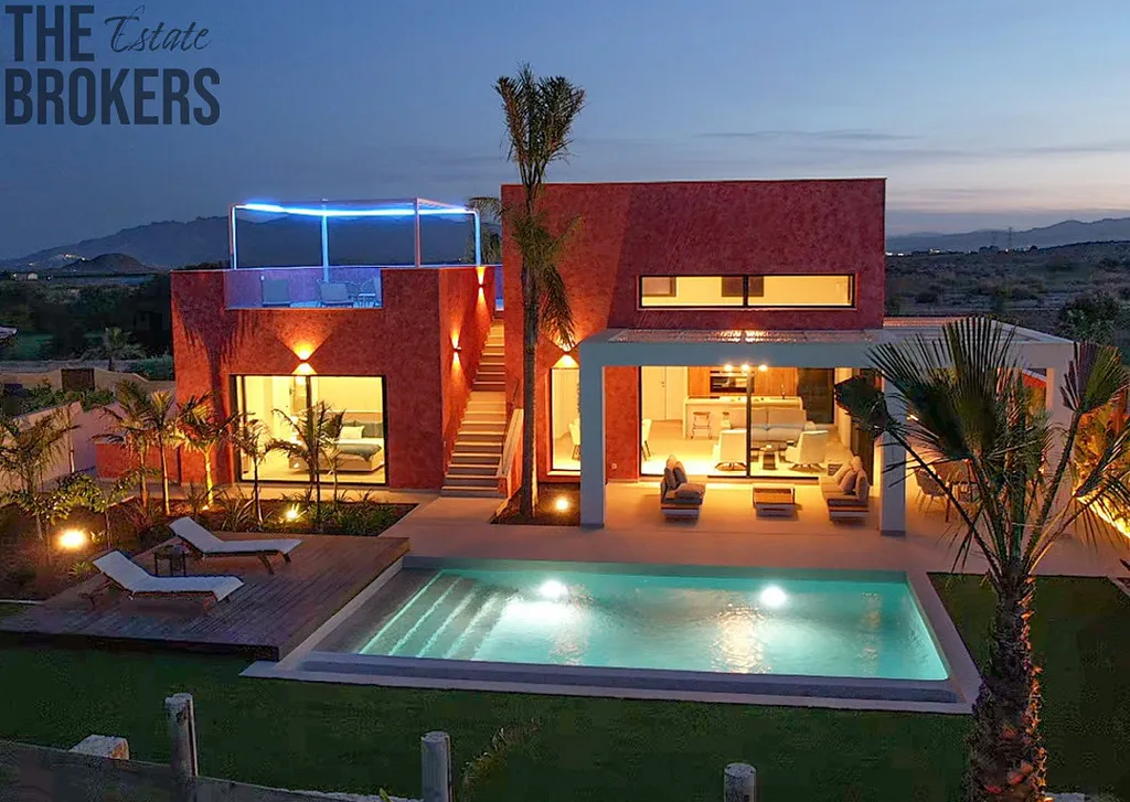 Venkovní prvky: Zahrnují standardní bazén 8m x 4m, obvodové oplocení, vjezdovou bránu a zastíněné parkovací místo. Soukromé, částečně zastíněné terasy na obou stranách nemovitosti, venkovní přívod vody a elektřiny a počáteční úprava zahrady jsou rovněž zahrnuty.