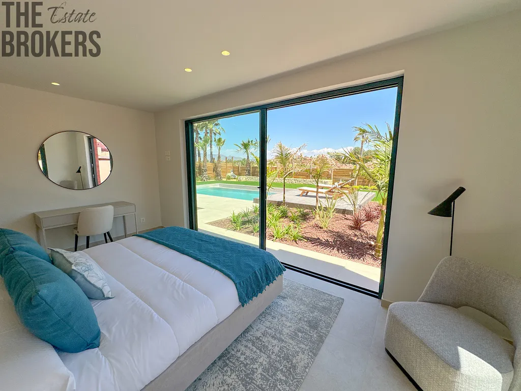 Ložnice: Hlavní ložnice s koupelnou en-suite má přímý přístup na verandu a k bazénu. K dispozici jsou dvě další ložnice s koupelnou en-suite a šatna. Ložnice mají plně vybavené, zrcadlové vestavěné skříně.