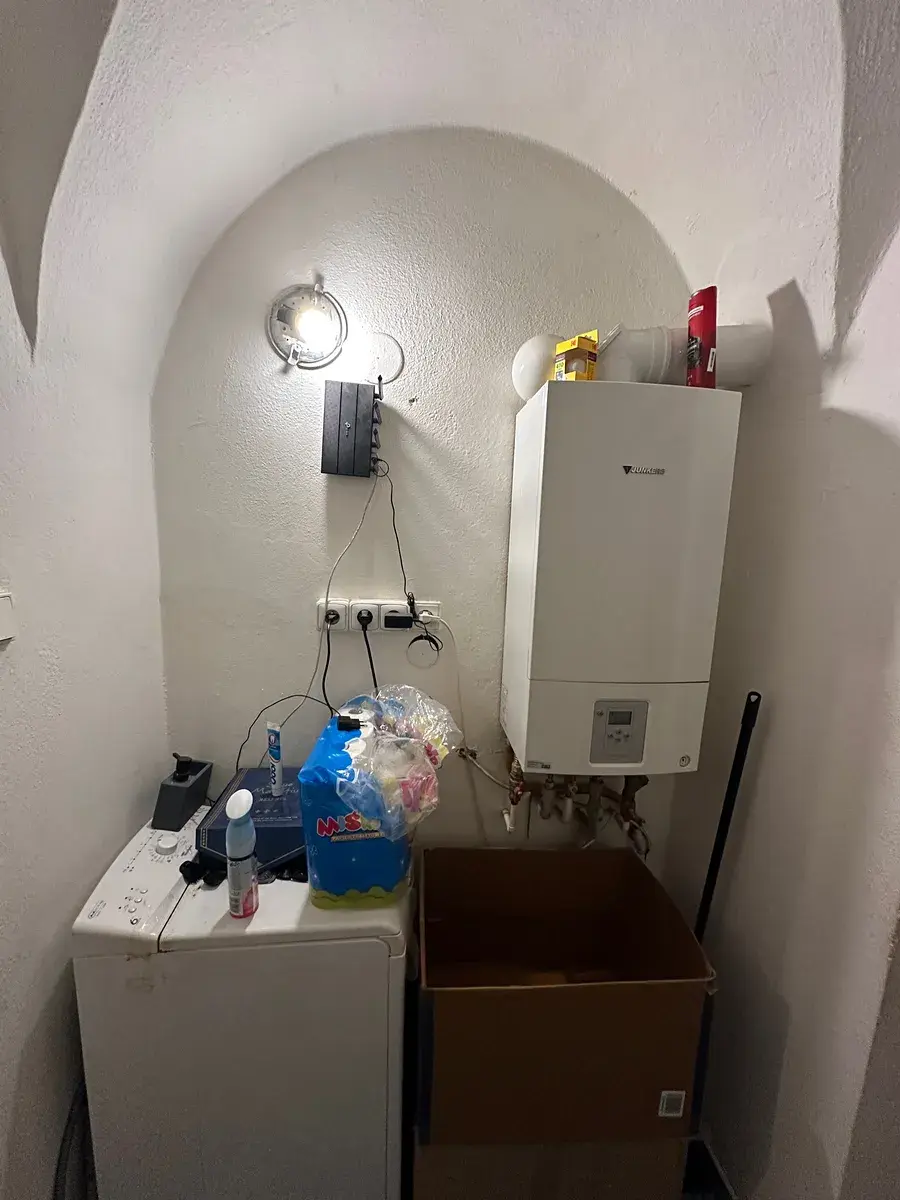 Topení a ohřev vody je řešen vlastním plynovým kotlem.