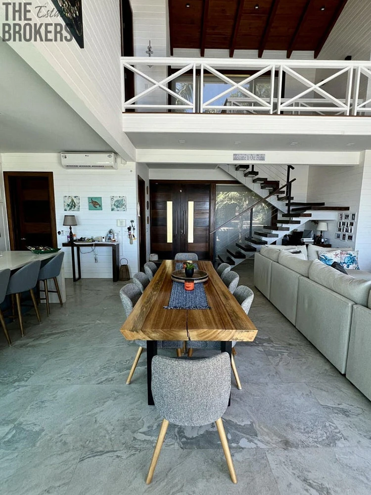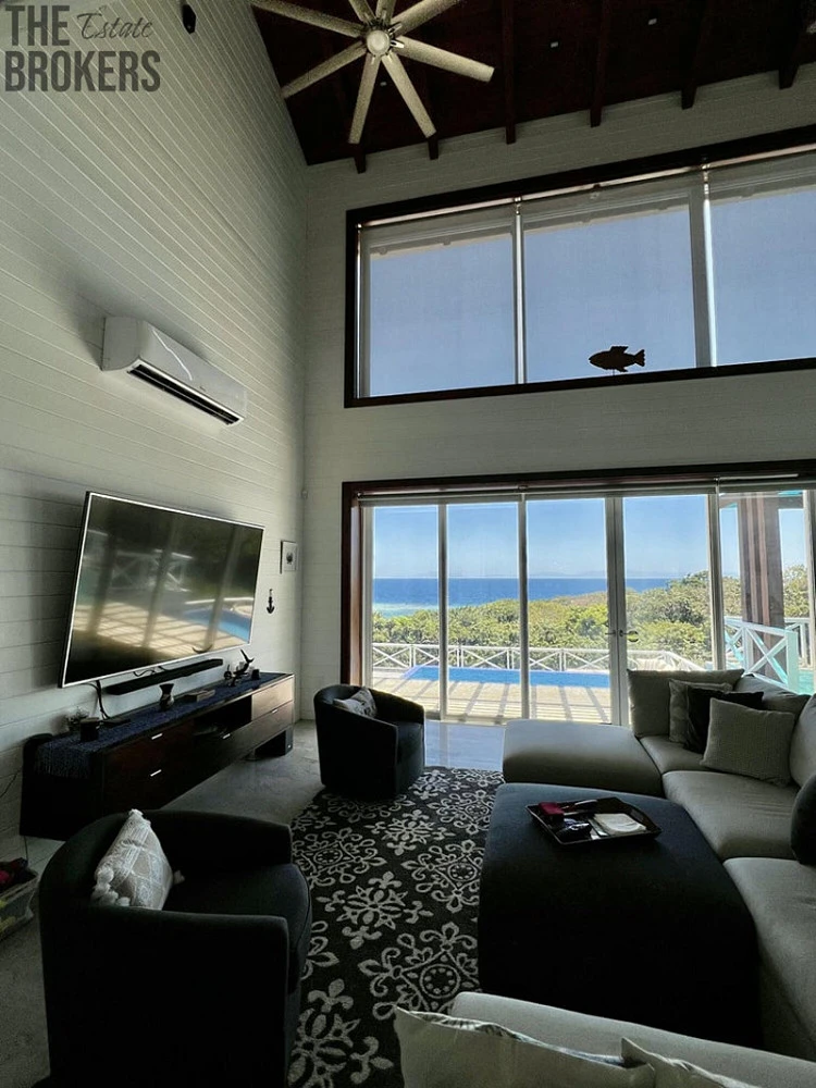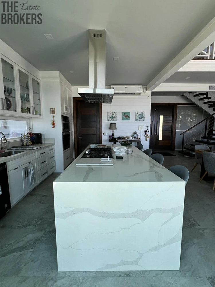 Tento nádherný dům zasazený do malebné krajiny s úchvatným výhledem na oceán spojuje luxus, pohodlí a moderní design. Tato nemovitost je ideální pro relaxaci i zábavu a nabízí bezproblémové bydlení uvnitř i venku, což z ní dělá perfektní útočiště pro rodiny nebo kohokoli, kdo si chce užít klid života na pobřeží. Tato rezidence se třemi prostornými ložnicemi a 3,5 koupelnami snadno ubytuje rodiny i hosty. Rozlehlá terasa je jako stvořená pro zábavu, nabízí stylový venkovní jídelní kout zastíněný elegantními pergolami a doplněný šumivým bazénem, který je ideální pro opalování nebo osvěžující koupání. Exteriér domu se může pochlubit moderní estetikou s elegantními liniemi, velkými okny a prostornou terasou ta umocňuje úžasný výhled na okolní krajinu a oceán, to vše obklopené bujnou zelení, která poskytuje soukromí a klidnou atmosféru. Tato nemovitost se nachází v exkluzivní malé komunitě s přístupem do doku a nabízí jedinečnou kombinaci ústraní a pohodlí.