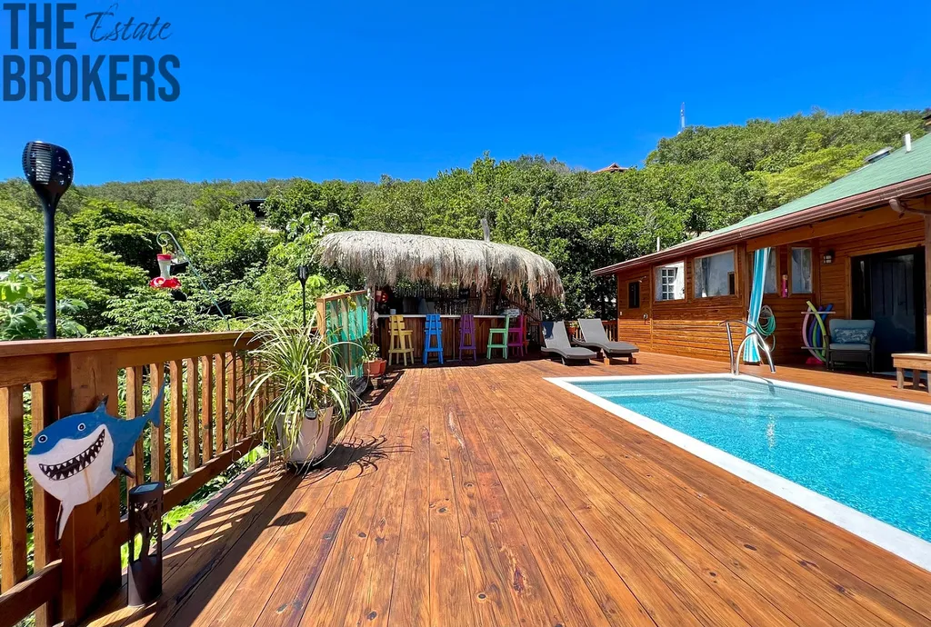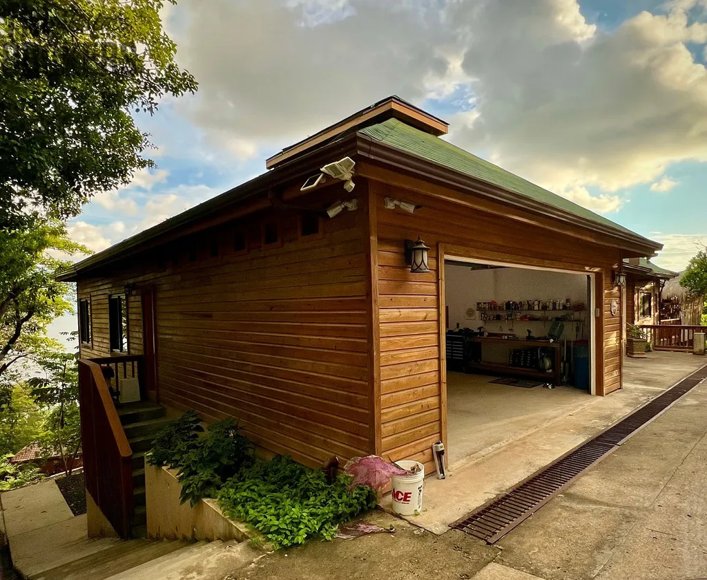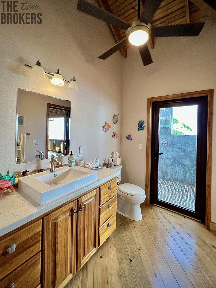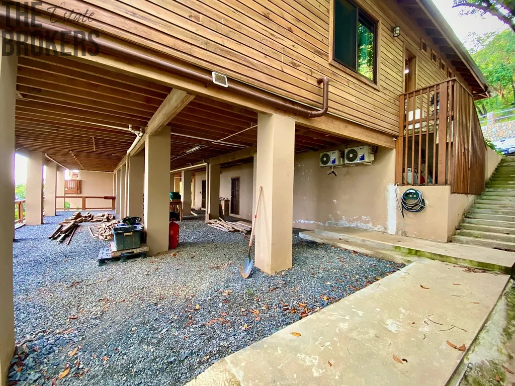 Je tu skvělý venkovní prostor s nekonečným bazénem se slanou vodou, hned vedle hlavní ložnice a TIKI bar. Prádelna s pračkou a sušičkou, velká šatna. Nadměrná garáž se dvěma stáními, s chytrým otvíračem dveří, velkým pracovním stolem, je zde take několik polic a hluboký dřez. Pod domem je masivní prostor využívaný jako dílna, jsou zde také 3 další skladovací prostory, osobní, mechanický, a bazénový ve kterém je umístěné veškeré, špičkové bazénové Pentair zařízení. V pracovní části pod domem je také vana. Celá nemovitost je oplocena řetězovým plotem, vaše zvířata mají spoustu prostoru a bezpečí na to, aby se mohla toulat po pozemku.